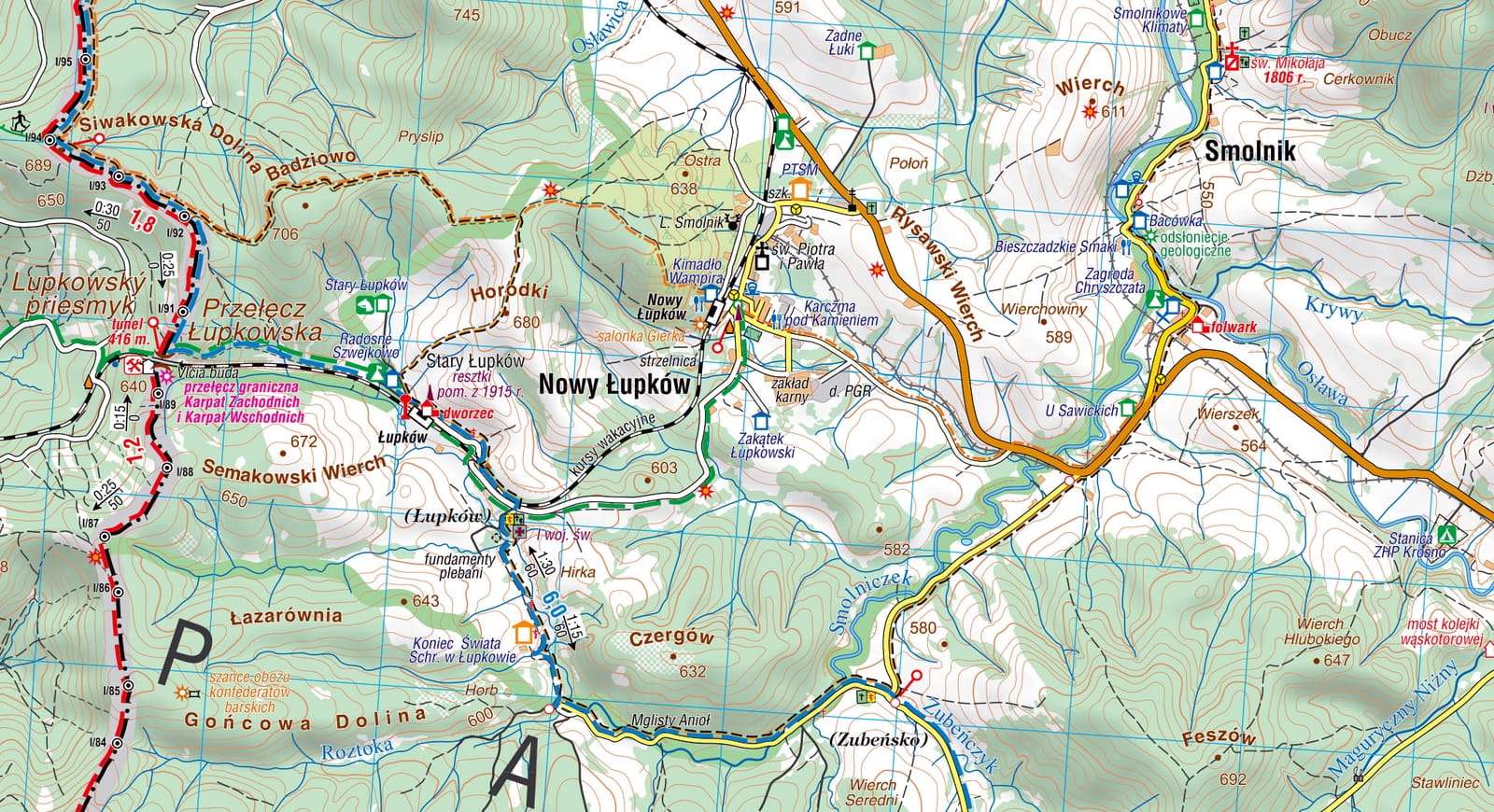 Wydanie mapy poprzedziła gruntowna weryfikacja terenowa oraz konsultacje ze „znawcami” terenu, efektem czego jest aktualna sieć szlaków turystycznych, dokładna lokalizacja zabytków architektury sakralnej, cmentarzy wojennych, pomników przyrody i innych ciekawych obiektów. Dużo uwagi poświęciliśmy na weryfikację i odpowiednią klasyfikację sieci dróg - wyróżniając te wyasfaltowane i szutrowe (utwardzone). Zrobiliśmy to z myślą o rowerzystach. Wskazaliśmy również miejsca zakazu wjazdów dla pojazdów samochodowych. Po słowackiej stronie baza noclegowa jest bardzo skromna więc pozostaje nam zwiedzanie tych terenów na zasadzie jednodniowych wypadów lub dźwiganie ze sobą namiotu.