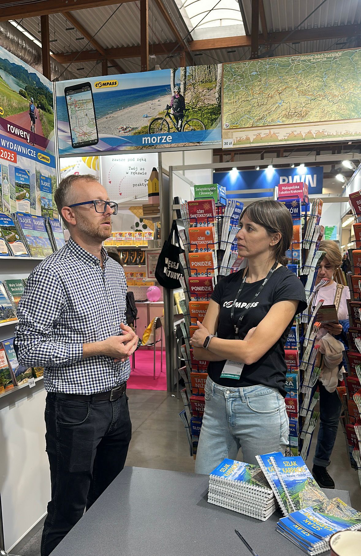 Tegoroczne Targi Książki w Krakowie ponownie zgromadziły miłośników literatury, podróży i dobrych map. Wydawnictwo Compass z dumą zaprezentowało swoją ofertę, w której nie zabrakło nowości oraz dobrze znanych pozycji z naszych serii turystycznych i kartograficznych. Nasze stoisko cieszyło się dużym zainteresowaniem – odwiedzający chętnie sięgali po mapy górskie, mapy rowerowe oraz przewodniki po najpiękniejszych regionach Polski.