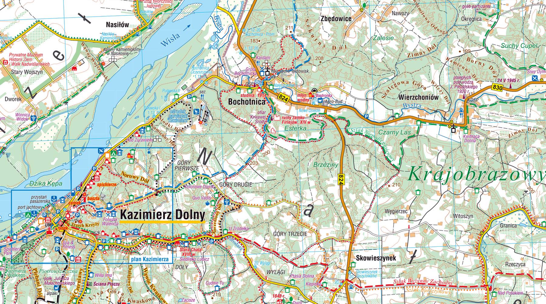 Mapa turystyczna Kazimierza Dolnego i okolic – szlaki, zabytki, wąwozy lessowe