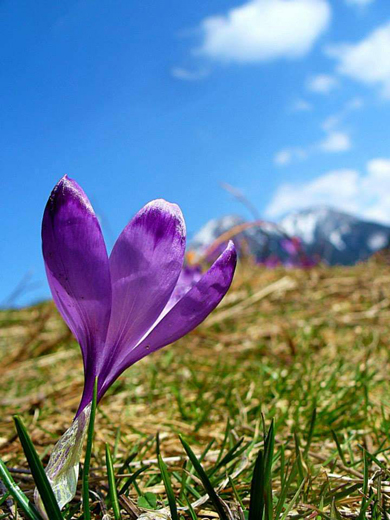 Krokusy kwitną od marca do kwietnia, pokazując się jako zwiastun wiosny na łąkach, halach i polanach gdzie często jeszcze zalega śnieg. Kwiaty wyrastają bezpośrednio z ziemi, tworząc szafirowy dywan, przetykany białymi egzemplarzami. Jest to widok charakterystyczny zwłaszcza dla obszarów koszonych lub tam, gdzie prowadzony jest wypas.