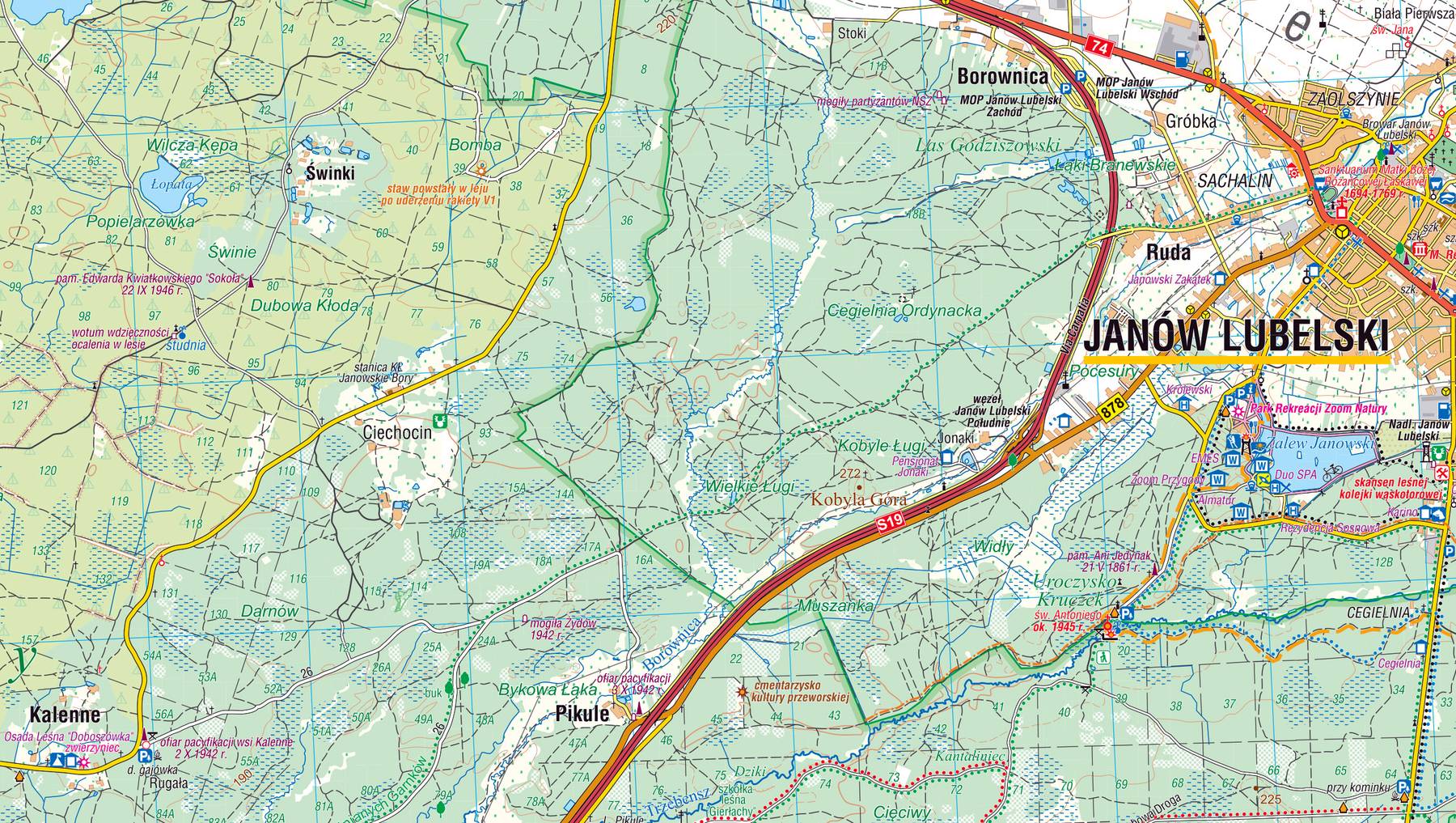 Mapa turystyczna "Lasy Janowskie" 1:50'000 – dwustronna, pełna szlaków i atrakcji przyrodniczych