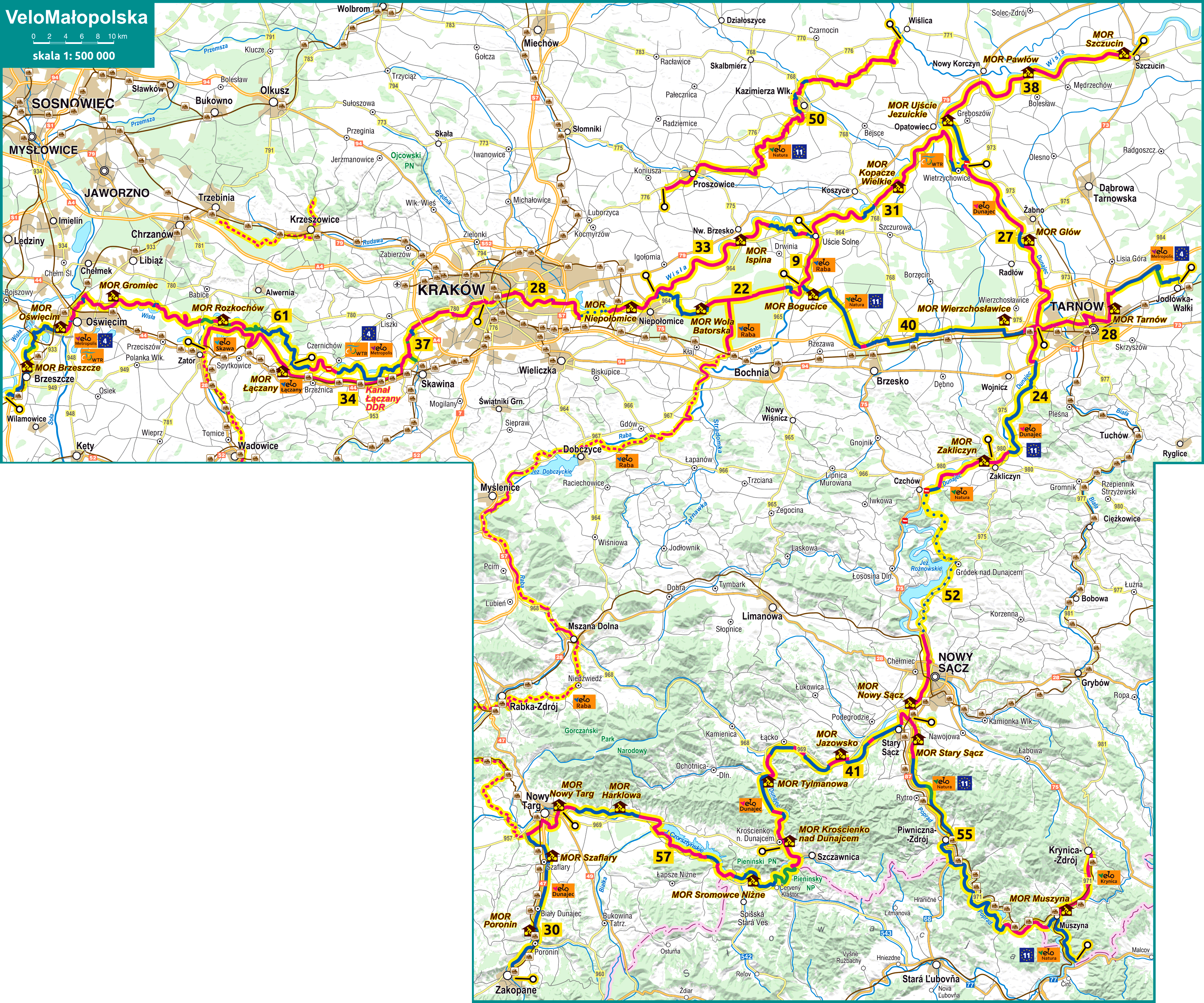 - planowane lub w budowie trasy: VeloRaba, VeloPrądnik, VeloRudawa, VeloSkawa.