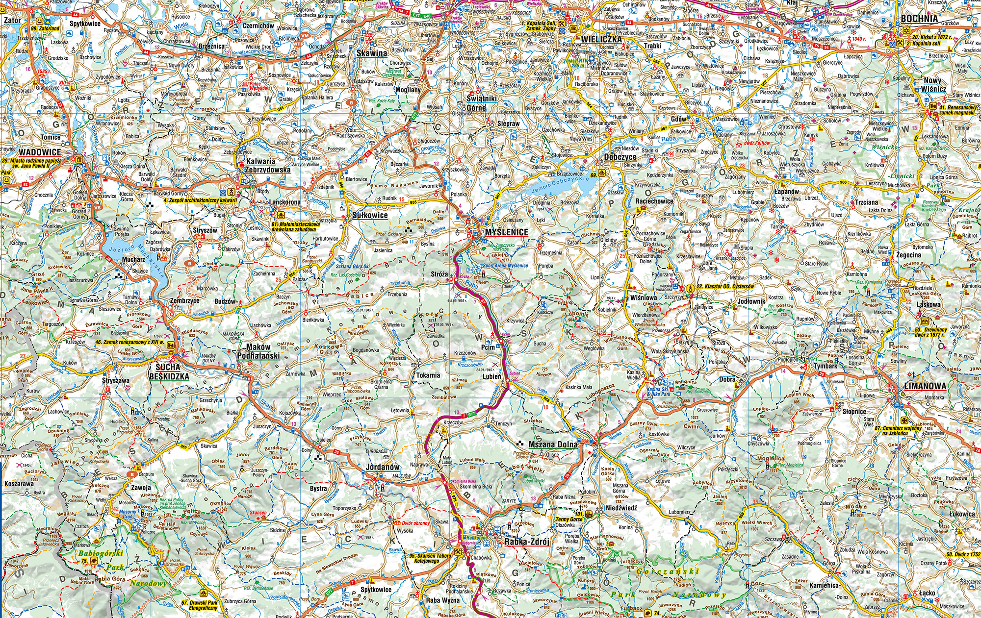 Małopolskie – mapa atrakcji turystycznych 1:200 000