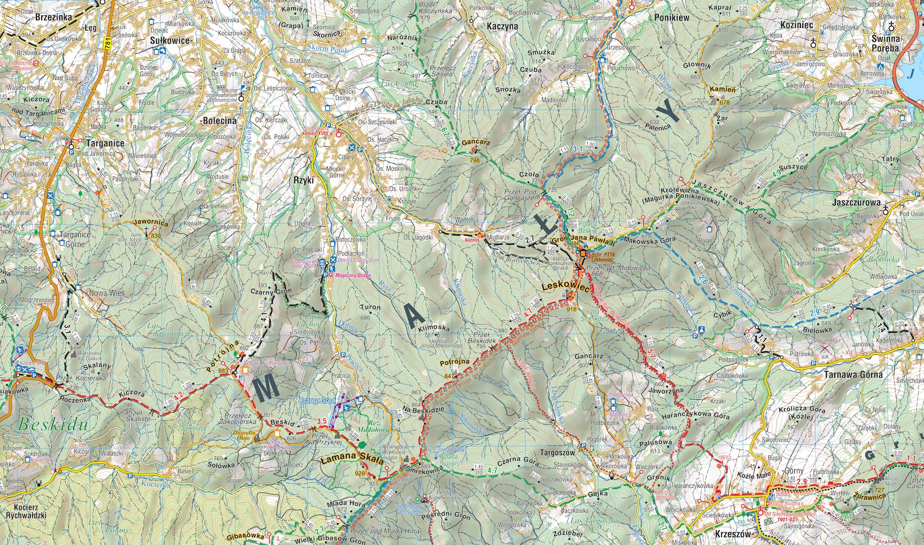 Jest to mapa jednostronna w skali 1:40'000. Mapa prezentuje obszar najmniejszego, ale jakże urokliwego polskiego Beskidu. Zasięg mapy obejmuje tereny pomiędzy Bielskiem-Białą na zachodzie i Suchą Beskidzką na wschodzie oraz Wadowicami od północy i Żywcem na południu.