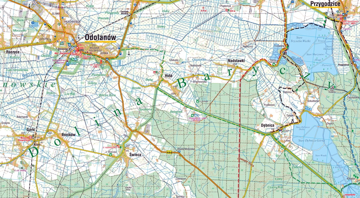 Jest to mapa dwustronna w skali 1:50'000. Obejmuje cały obszar Parku Krajobrazowego Doliny Baryczy oraz tereny przyległe. Zasięg mapy wyznaczają: Ostrów Wielkopolski na północy, Twardogóra na południu, Rawicz na zachodzie i Mikstat na wschodzie. Jest to obszar wyjątkowo atrakcyjny przyrodniczo. Znajduje się tu największy w Europie kompleks sztucznych stawów rybnych. Stawy Milickie budowano sukcesywnie od XIII w., a zapoczątkowali je cystersi. Dziś to ważny ośrodek hodowli karpia. Co roku, jesienią, odbywają się Dni Karpia ze słynnymi odłowami ryb, którym towarzyszą imprezy i wydarzenia kulturalne. Stawy Milickie to również największy w Polsce rezerwat ornitologiczny. Ptasi raj przyciąga rzesze obserwatorów. Uprawianie birdwatchingu umożliwiają liczne wieże i czatownie. Bogate, a przy tym mało znane jest także dziedzictwo kulturowe tego obszaru. Osobliwością są szachulcowe kościoły, domy z rudy darniowej czy zabytkowe jazy. Skala mapy pozwoliła na dokładne naniesienie dróg, ścieżek, szlaków pieszych, rowerowych, kajakowych, dydaktycznych i spacerowych.