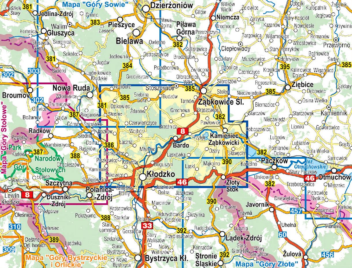Góry Bardzkie i okolice to mapa w skali 1:35'000. Przedstawia najdalej na wschód wysunięte pasmo górskie w Sudetach Środkowych, a także dodatkowo część Gór Sowich i Gór Złotych. Zasięg mapy wyznaczają: Ząbkowice Śląskie na północy, Kłodzko i Złoty Stok na południu, Nowa Ruda-Słupiec na zachodzie i Kamieniec Ząbkowicki na wschodzie.