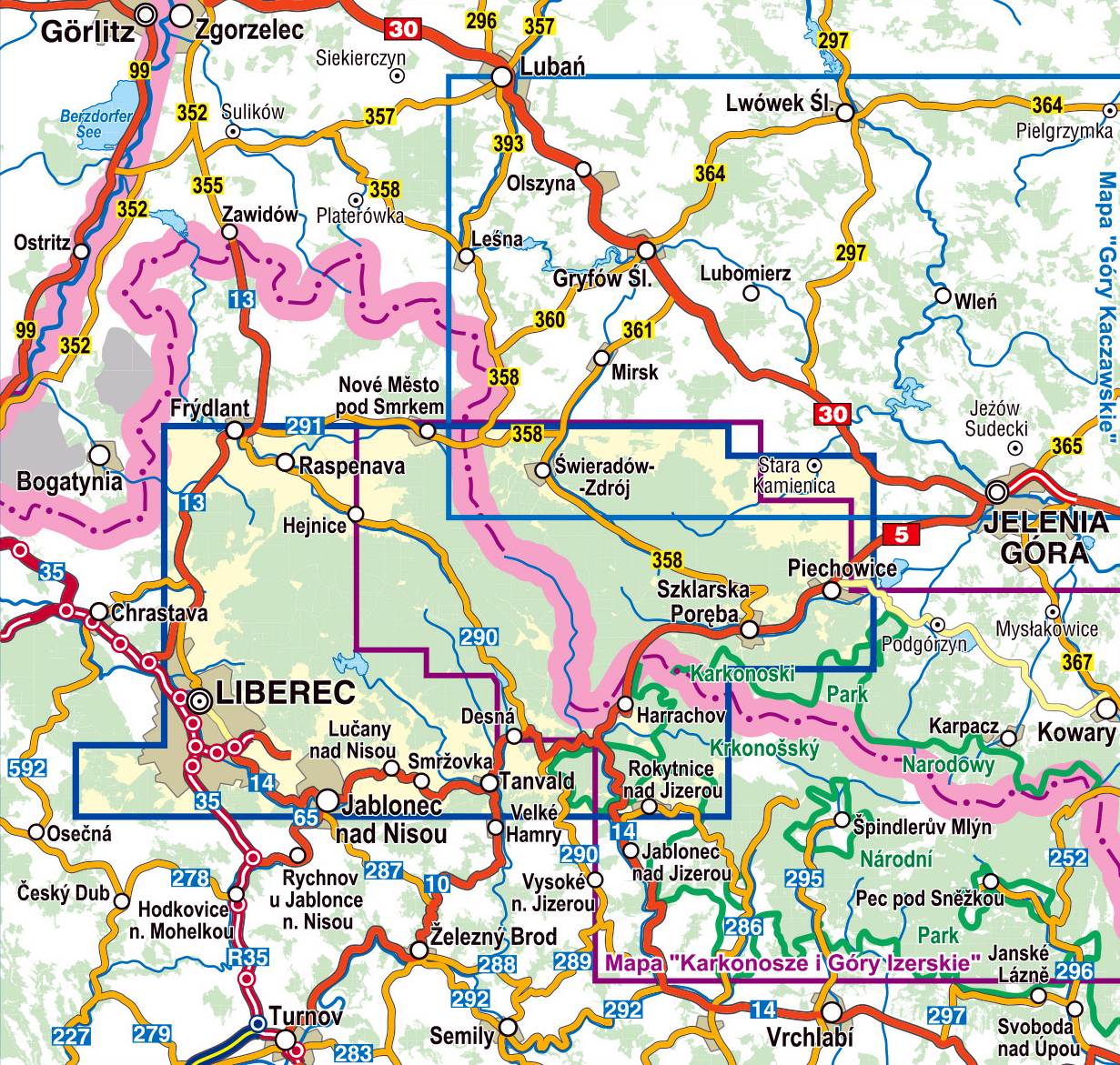 Uzupełnieniem mapy są Karkonosze, Góry Izerskie 1:35 000.