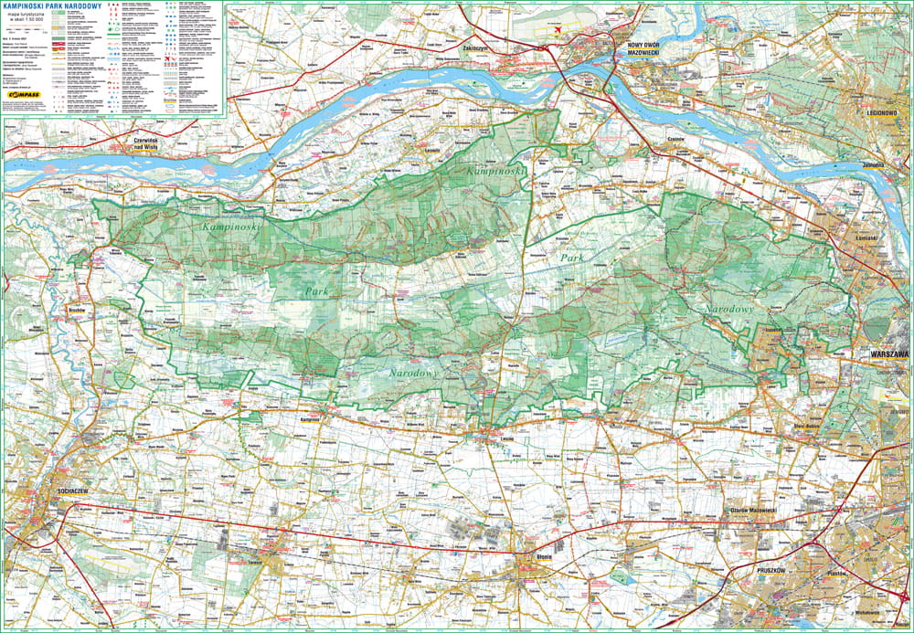 Jest to mapa jednostronna w skali 1:50'000. Obejmuje cały obszar Kampinoskiego Parku Narodowego (wraz z enklawami) oraz tereny przyległe. Obszar mapy od północy ogranicza dolina Wisły, od zachodu Bzura, a od wschodu aglomeracja warszawska. Zasięg mapy wyznaczają: Nowy Dwór Mazowiecki na północy, Sochaczew na zachodzie, Pruszków na południu i Warszawa oraz Legionowo na wschodzie.