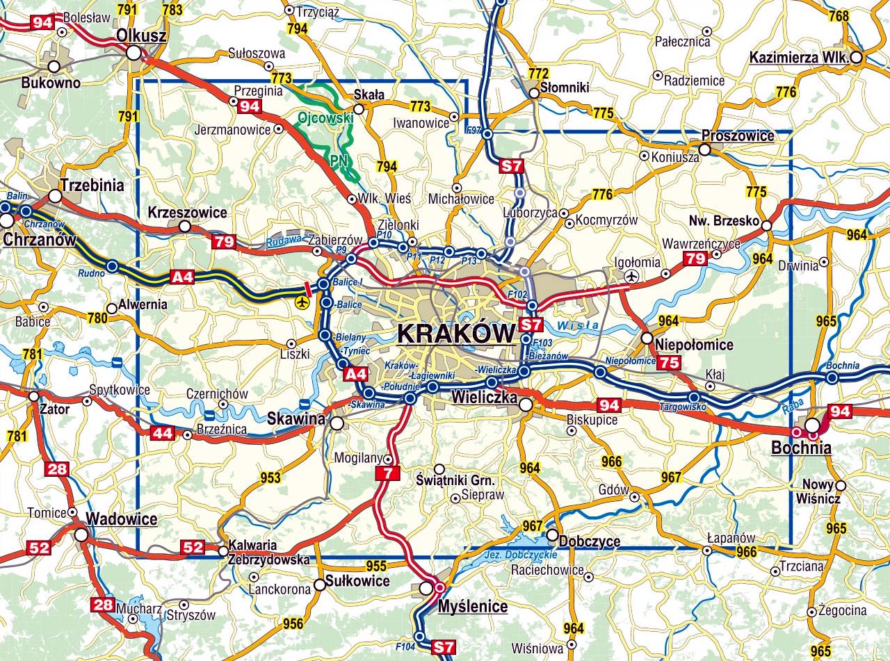 Jest to mapa dwustronna w skali 1:45'000. Obejmuje Kraków wraz z przylegającymi okolicami. W najnowszym wydaniu zmieniono nieco zasięg mapy, który został pomniejszony w zamian za większą dokładność. Na zachodzie mapa sięga za Krzeszowice i Kalwarię Zebrzydowską, na południu po Dobczyce i Łapanów, na wschodzie po Nowe Brzesko i przed Bochnię zaś na północy za Skałę i Proszowice.