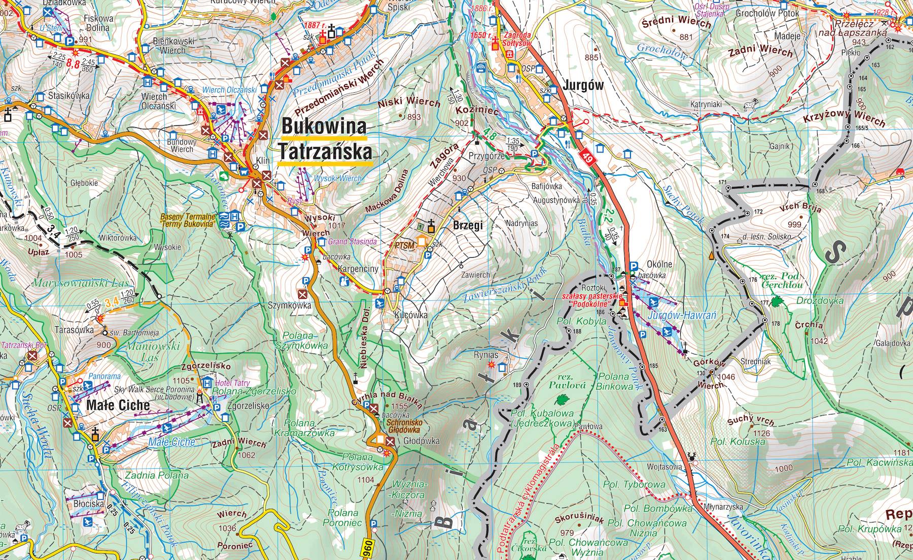Jest to idealny teren na piesze wędrówki, ale także wycieczki rowerowe i wspinaczkę. Okolice Bukowiny Tatrzańskiej to popularny rejon narciarstwa zjazdowego i basenów termalnych. Położone na tym obszarze: Białka, Bukowina Tatrzańska, Małe Ciche, Jurgów i Murzasichle to jedne z bardziej znanych ośrodków narciarskich w Polsce.
