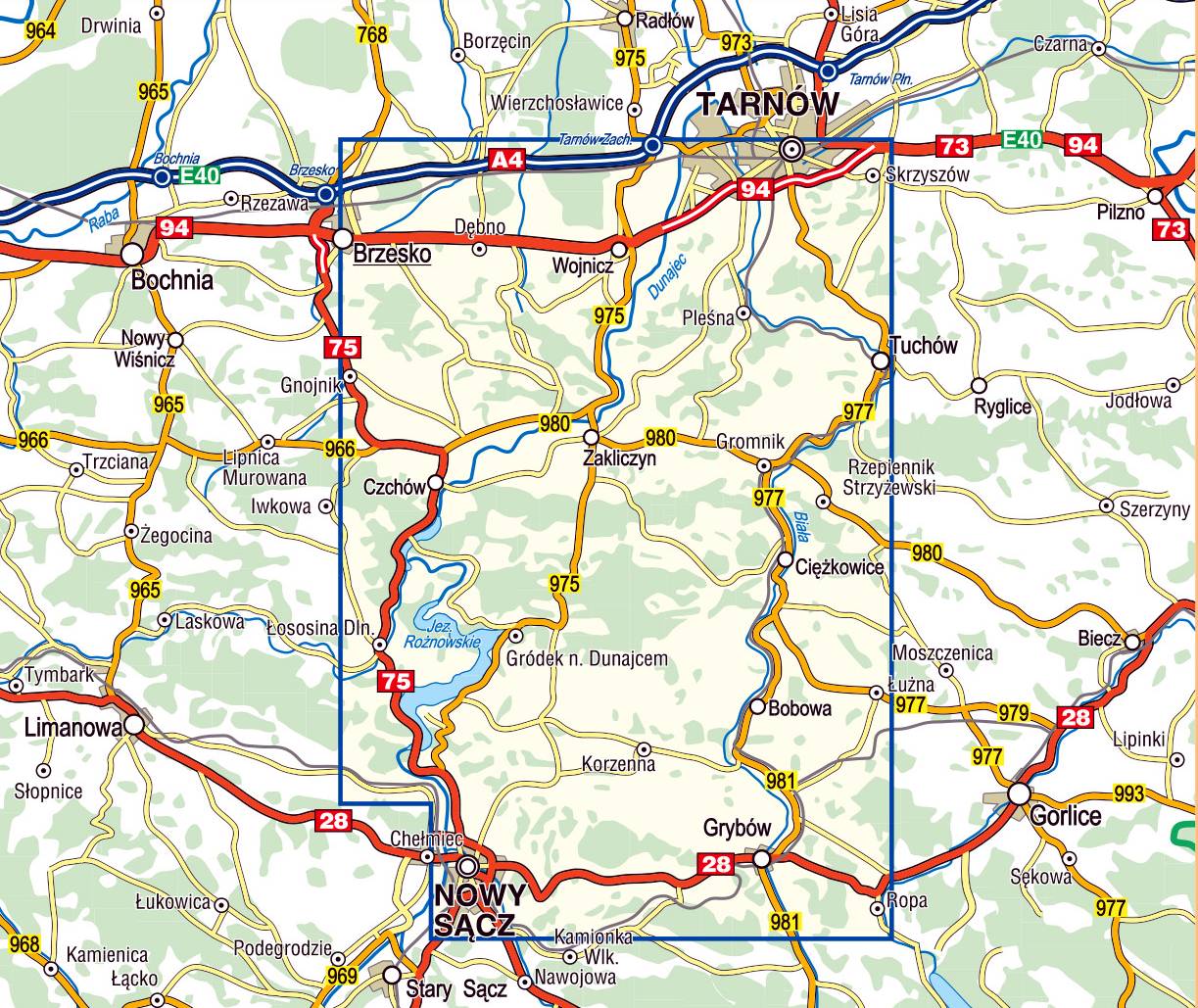 "Pogórze Rożnowskie" – mapa turystyczna w skali 1:50 000 to kompleksowe opracowanie przedstawiające niedoceniany i malowniczy region polskich Karpat. Zasięg mapy wyznaczają: Tarnów na północy, Nowy Sącz na południu, Tuchów i Ropa na wschodzie oraz Brzesko i Łososina Dolna na zachodzie.