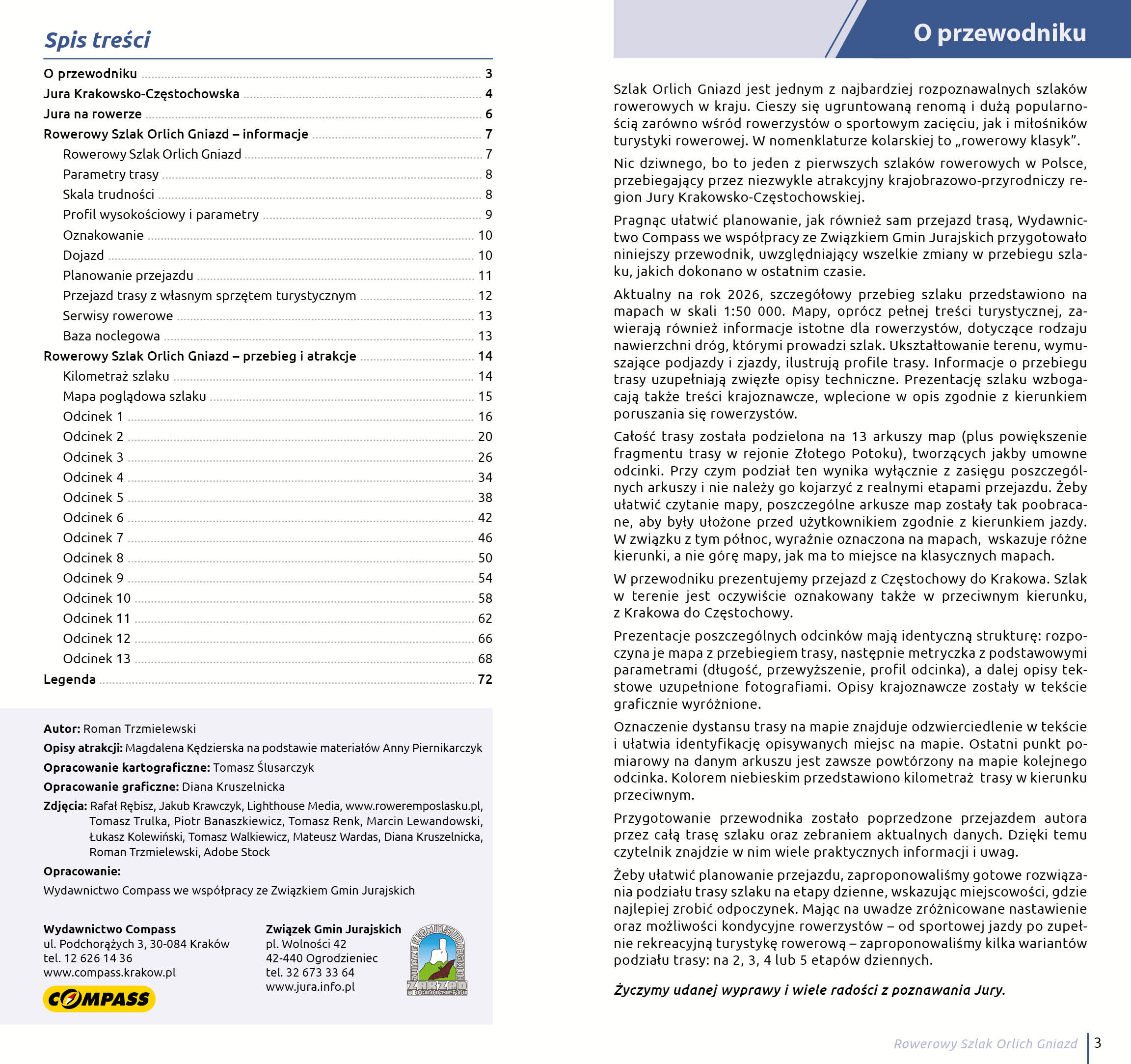 Ten przewodnik rowerowy to kompleksowe narzędzie do planowania i realizacji wyprawy – zarówno krótkiego wypadu, jak i kilkudniowej podróży z rodziną czy znajomymi. Publikacja została przygotowana przez Wydawnictwo Compass we współpracy ze Związkiem Gmin Jurajskich i zawiera aktualny przebieg szlaku wraz z najnowszymi zmianami.