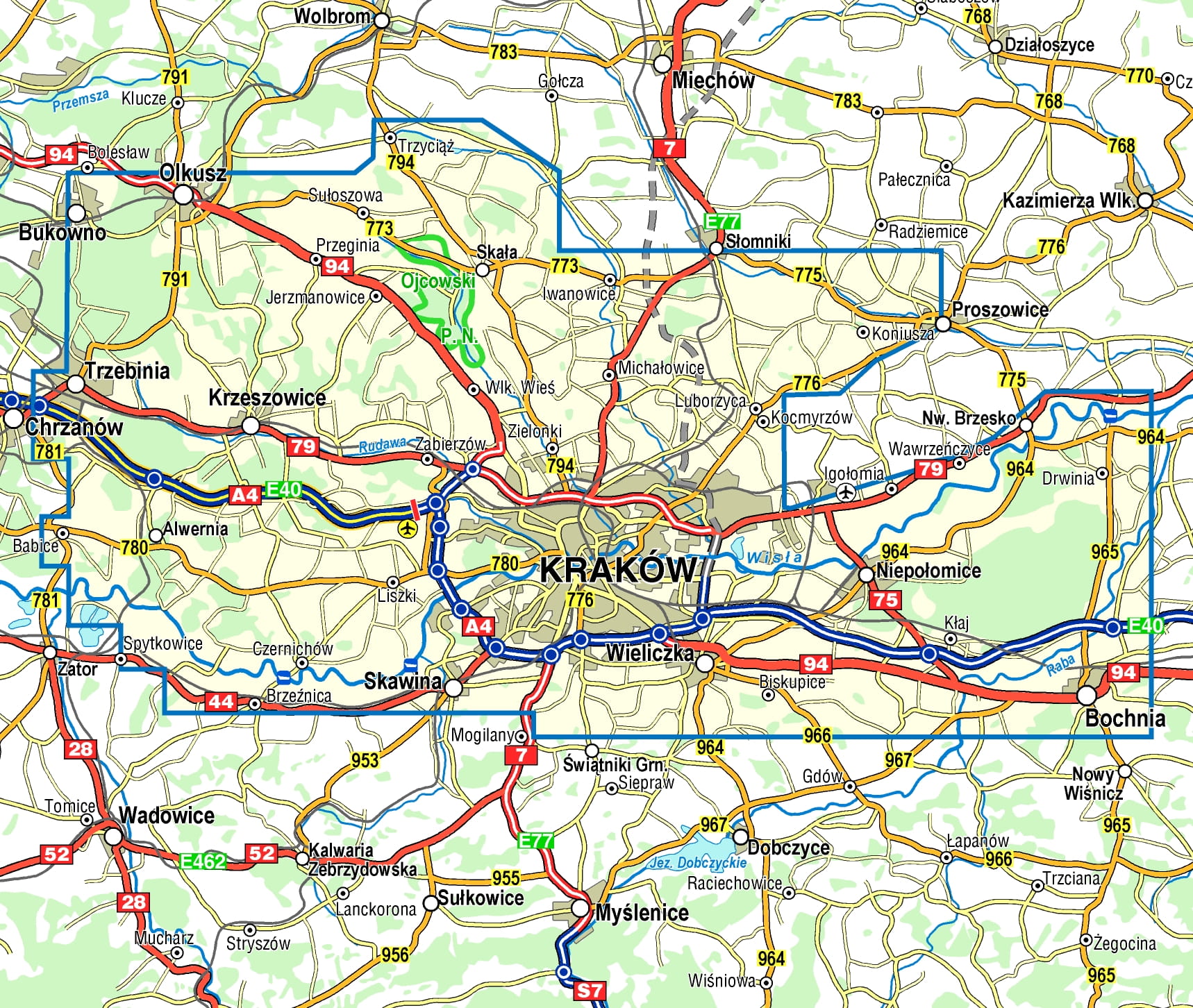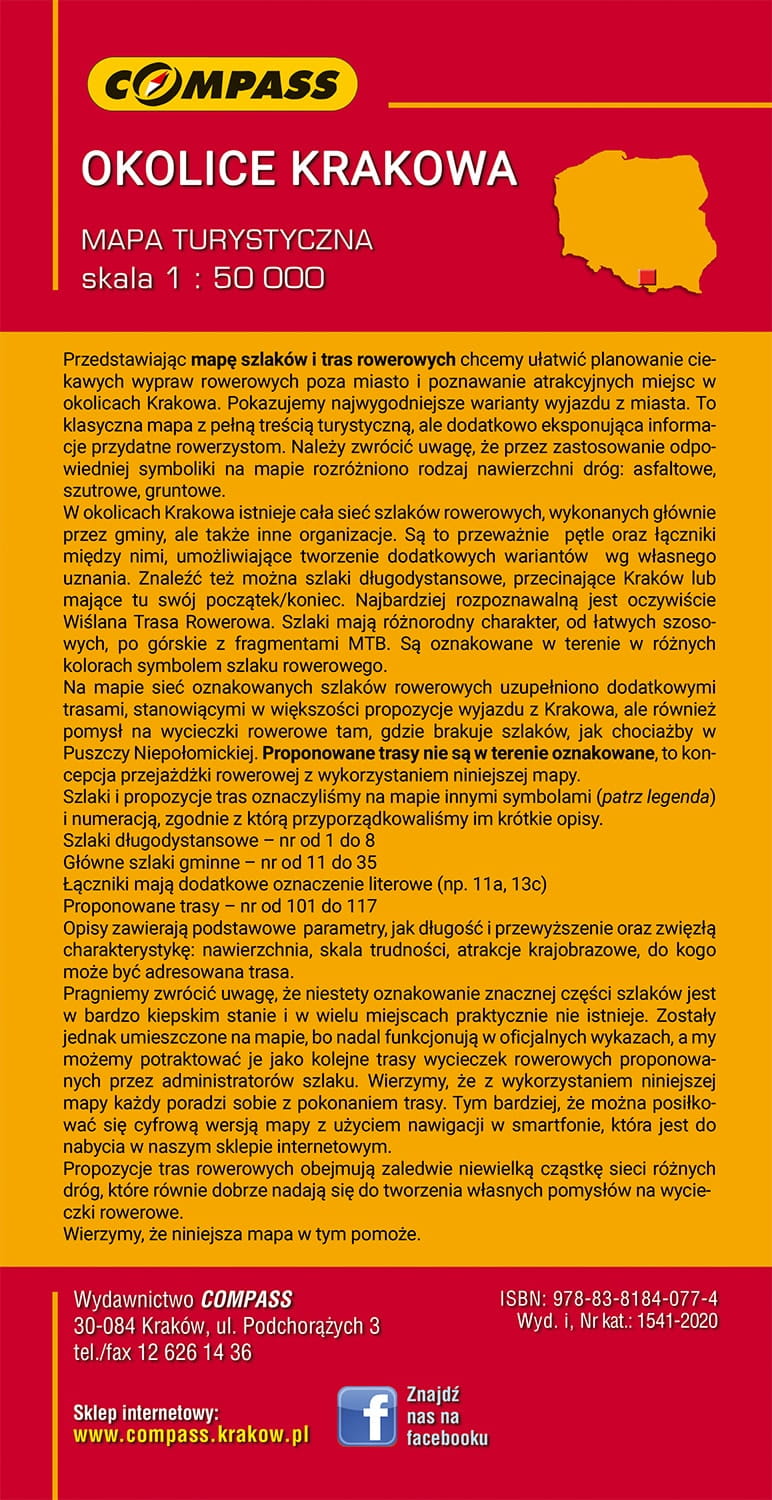 Jest to mapa dwustronna w skali 1:50'000. Obejmuje Kraków wraz z przylegającymi okolicami zawartymi między Olkuszem - Trzebinią - Wiślaną Trasą Rowerową - Skawiną - Wieliczką - Bochnią, Nowym Brzeskiem i Słomnikami.