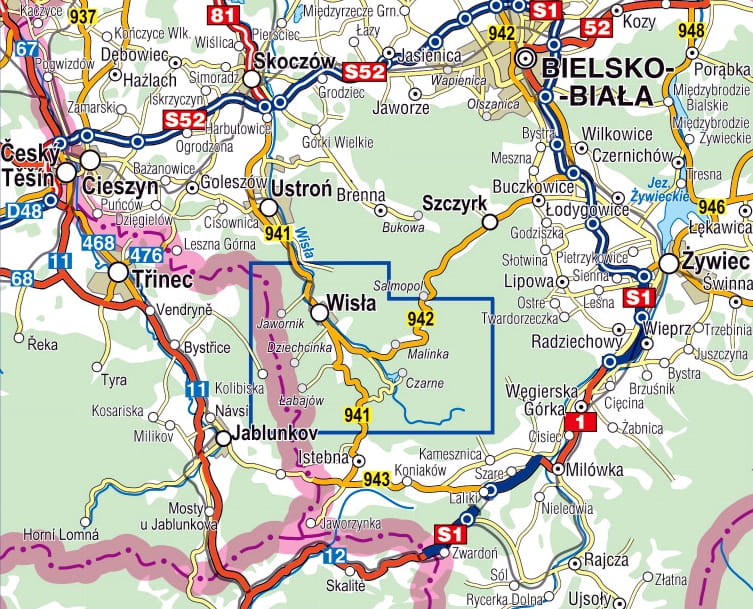 Jest to mapa jednostronna w skali 1:25'000. Przedstawia okolice ciekawej miejscowości turystycznej, położonej w Beskidzie Śląskim. Zasięg mapy wyznaczają: Ustroń na północy, Wielka Czantoria na zachodzie, Istebna na południu i Barania Góra na wschodzie.